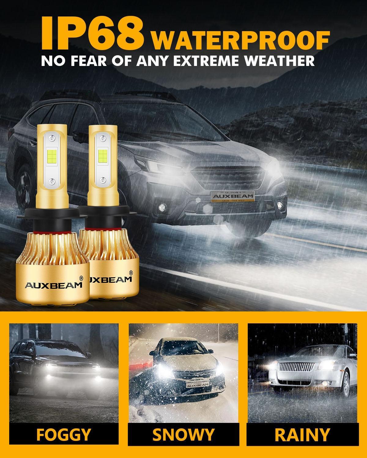 - Bombillas LED H3 de la serie S3 con haz preciso de 360° sin zona ciega, utilizan chips CSP de actualización automotriz, salida de luz con potencia de 72 W y 10 000 LM por juego, lo que proporciona una mejor visibilidad hasta 4 veces más brillante que las luces halógenas.