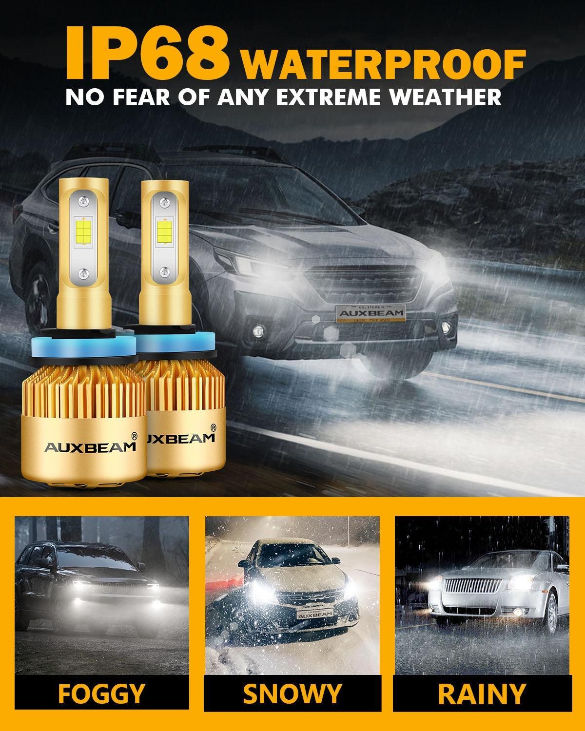400% MÁS BRILLANTE QUE EL HALÓGENO- Bombillas LED H11 de la serie S3 con haz preciso de 360° sin zona ciega, utilizan chips CSP de actualización automotriz, salida de luz con potencia de 72 W y 10 000 LM por juego, lo que proporciona una mejor visibilidad hasta 4 veces más brillante que las luces halógenas.