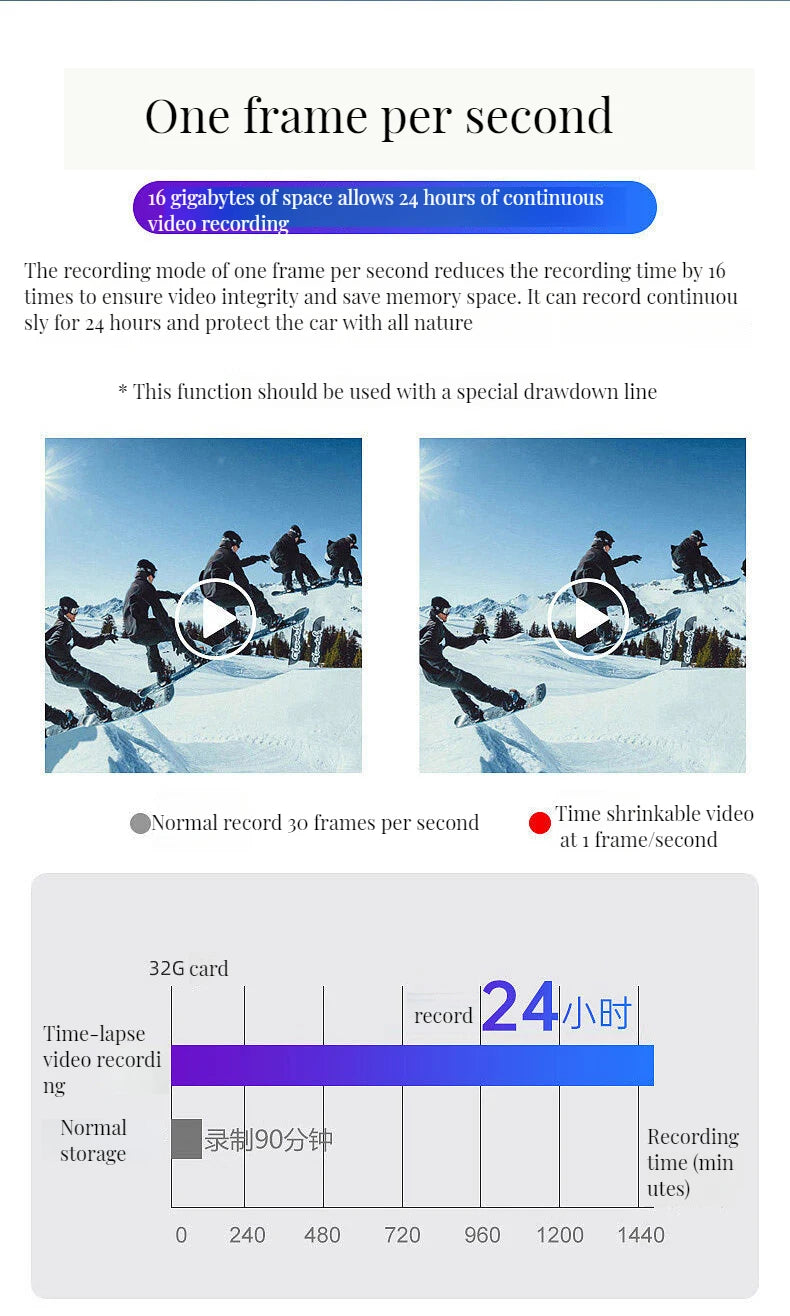 * 3. Loop recording: Automatically overwrite the first video when the memory card is full.