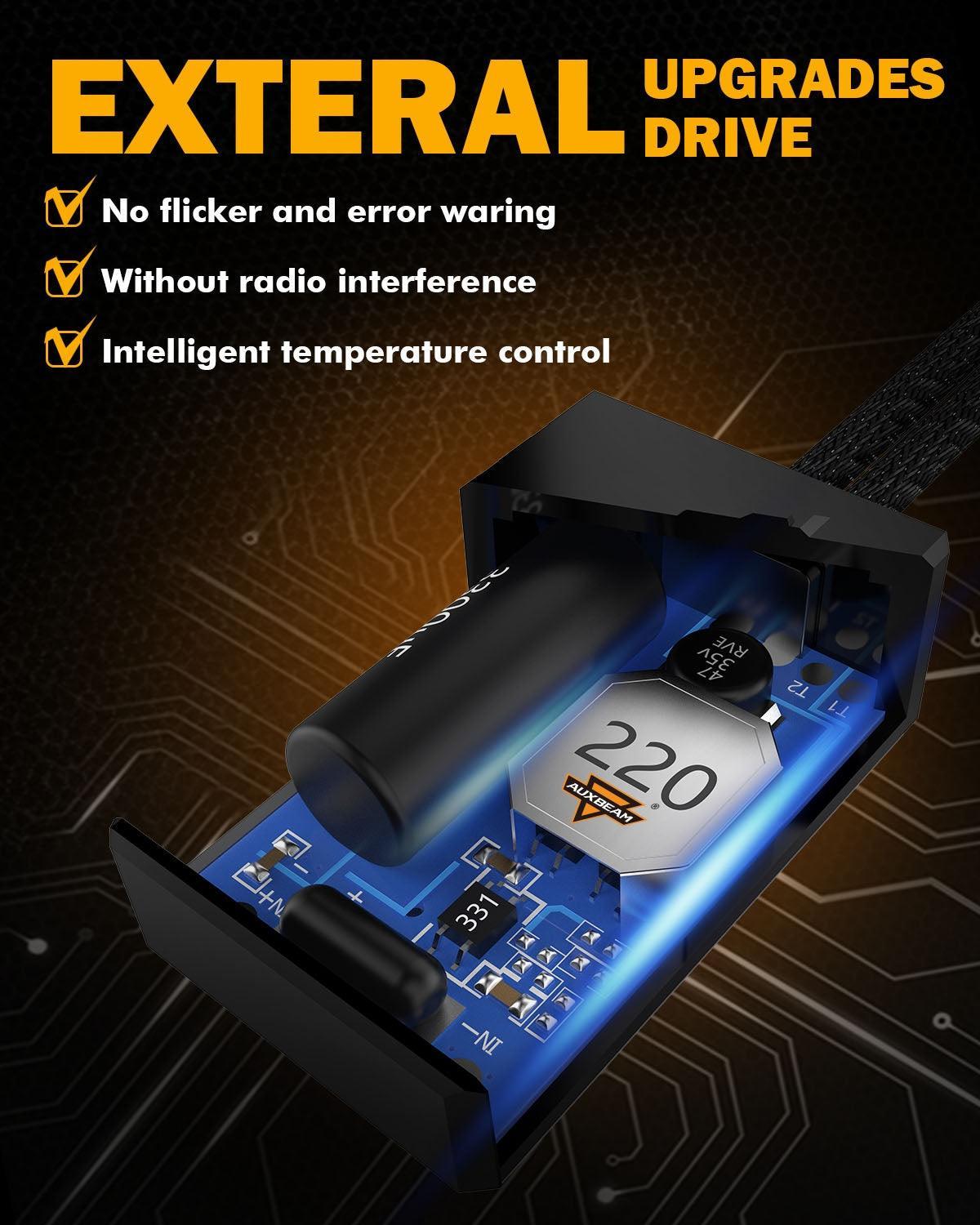 500% MÁS BRILLANTE QUE LAS BOMBILLAS HALÓGENAS- Versión mejorada de la serie F16, chips LED CSP3570, blanco de 6000k, salida de luminancia de 18000 altamente eficiente. El diseño del patrón de haz súper enfocado proporciona un rango de iluminación más amplio y lejano, que es 5 veces más brillante que las luces halógenas amarillas y tenues.