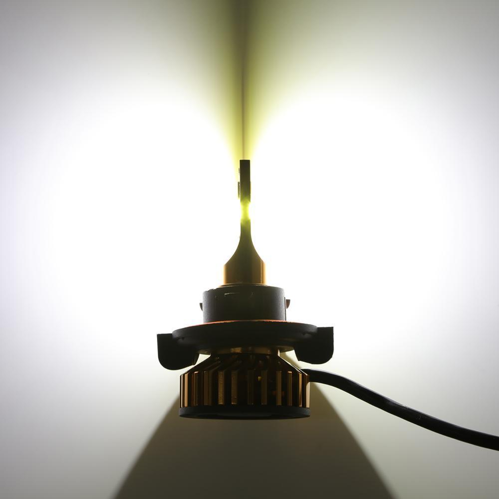 - Las bombillas LED H13 con iluminación de 360° chips LED CSP de doble cara proporcionan hasta un 300 % más de luz con un color blanco xenón de 6500 K más claro. Flujo luminoso: 10000 lm/juego (5000 lm/bombilla), 3 veces más brillante que la lámpara halógena.
