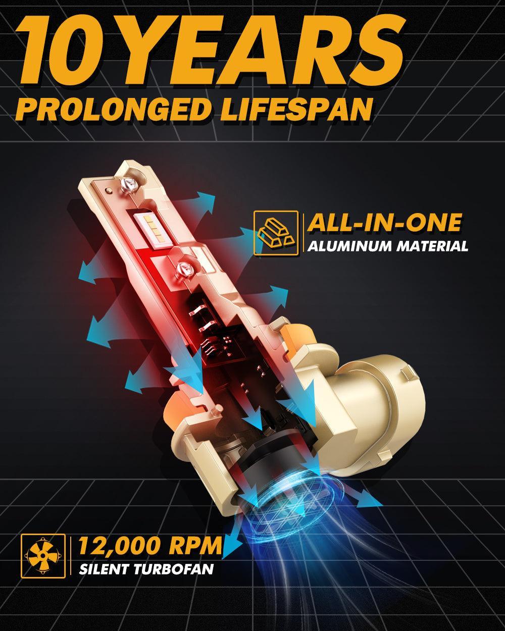 - 16000LM 6500K Visión blanca fría, chips LED CSP de 4 núcleos grandes de doble cara, salida de alta visibilidad, satisfacen sus desplazamientos y conducción nocturna en áreas urbanas.