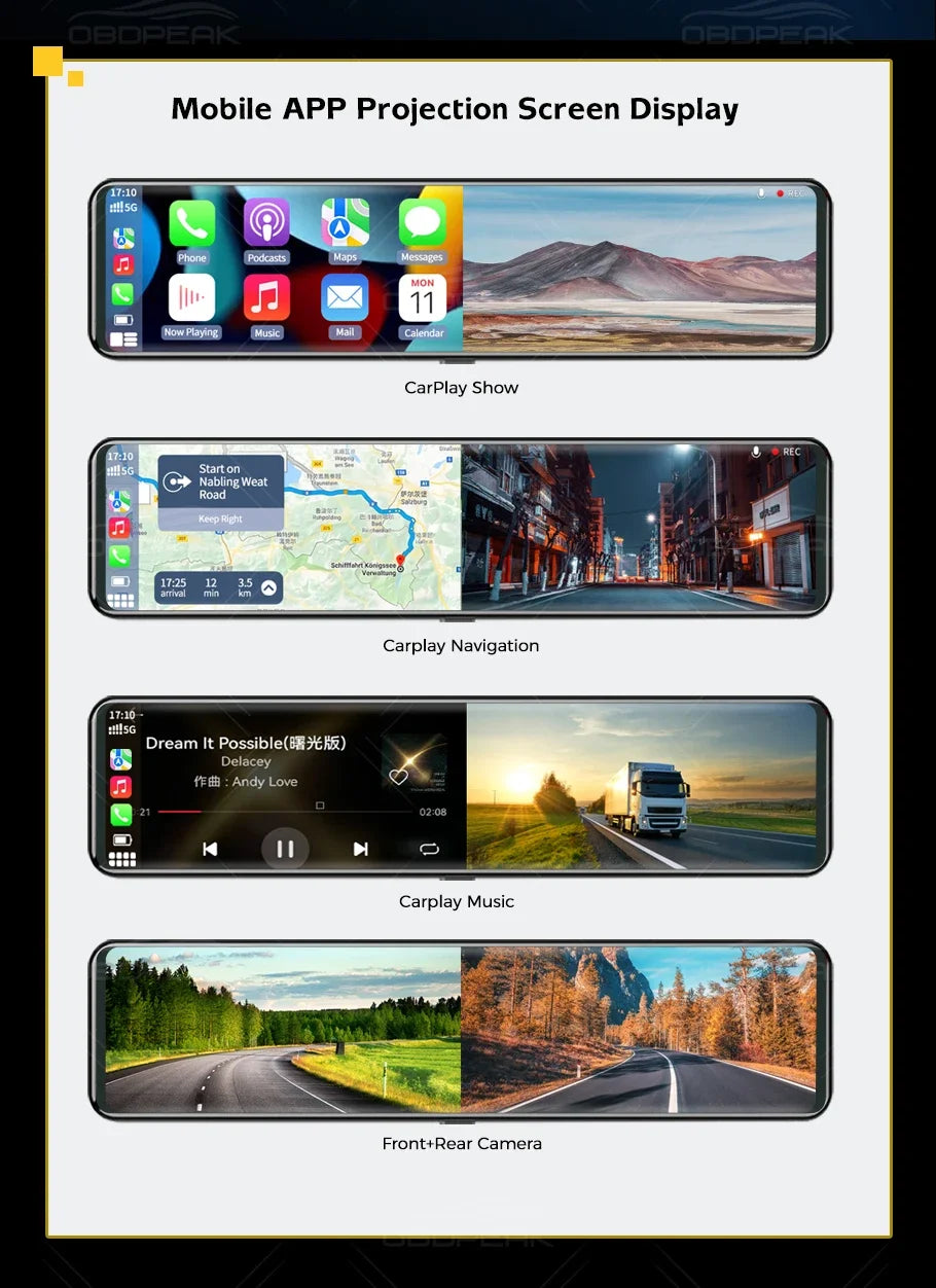 2024 Latest Upgrade, OBPEAK K4 11.26 inch 4K Rearview Mirror Camera with Wireless Carplay & Android Auto Function